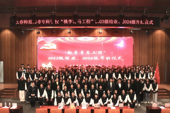 2025年11月17日,学前教育学院在C16106报告厅,举行“桃李青马工程”2023级学员班结业典礼暨2024级学员班开班仪式。学前教育学院党总支副书记徐忠伟、学生党支部书记李莹莹、学生党支部组织委员王美玲、学生党支部全体党员教师、“桃李青马工程”2023级学员代表及2024级全体学员,共计150余人参加了仪式。仪式由学生党支部宣传委员兼纪检委员辛思远主持。